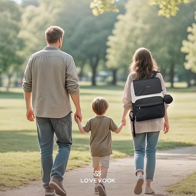 LOVEVOOK Diaper Bag Backpack, Baby Travel Bags for Boys & Girl, Toddler Waterproof Diaper Bag w/Changing Pad (Black, 15.6''-Small)