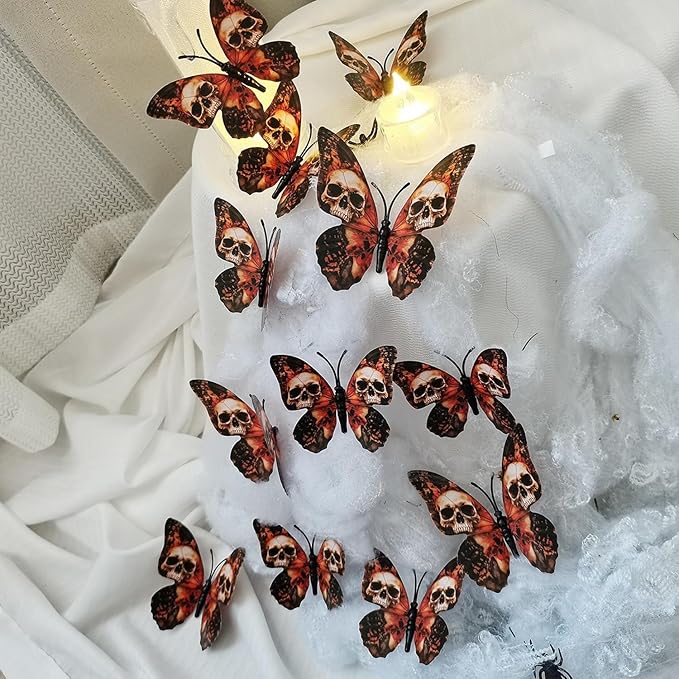 - Celebrate Halloween in style with our 12 pcs butterfly wall stickers, featuring vibrant skull butterflies designs that perfectly embody the Halloween spirit of the holiday