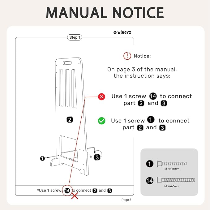 - Smart Assembly Tips: Each package includes an instruction manual and a hex wrench. For easier installation, you may also use an electric drill. Insert and adjust all screws first, then fully tighten them after the frame is fixed. Note: On page 3 of the manual, Step 1 should read “Use 1 screw No.1 to connect part No.2 and No.3.”