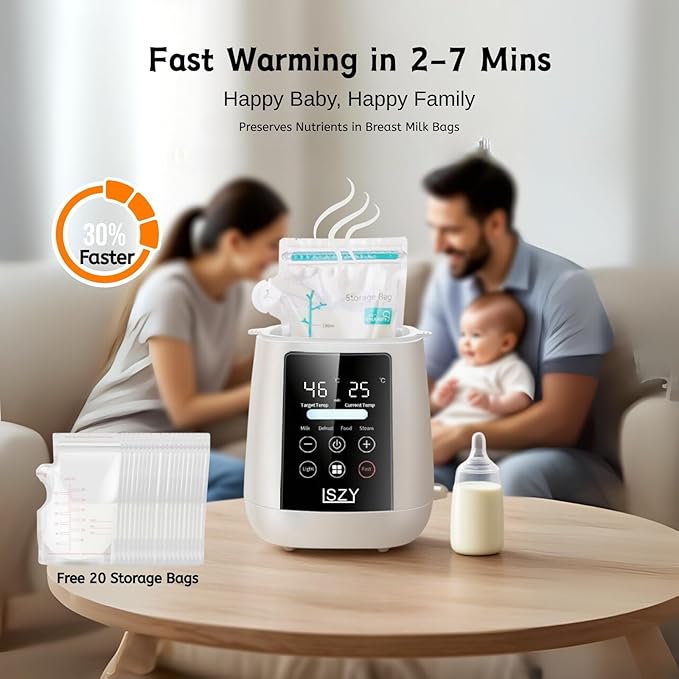 - 【Ultra-Fast & Gentle Heating】:This fast heating bottle warmer warms milk to a baby-friendly 45°C in minutes, preserving nutrients with gentle water bath technology—no hot spots! Ideal for refrigerated milk, frozen milk, or pumped milk, it ensures a natural feeding experience. The bottle warmer with timer and auto shut-off guarantees safety, while the IMD screen displays real-time temps for precision.