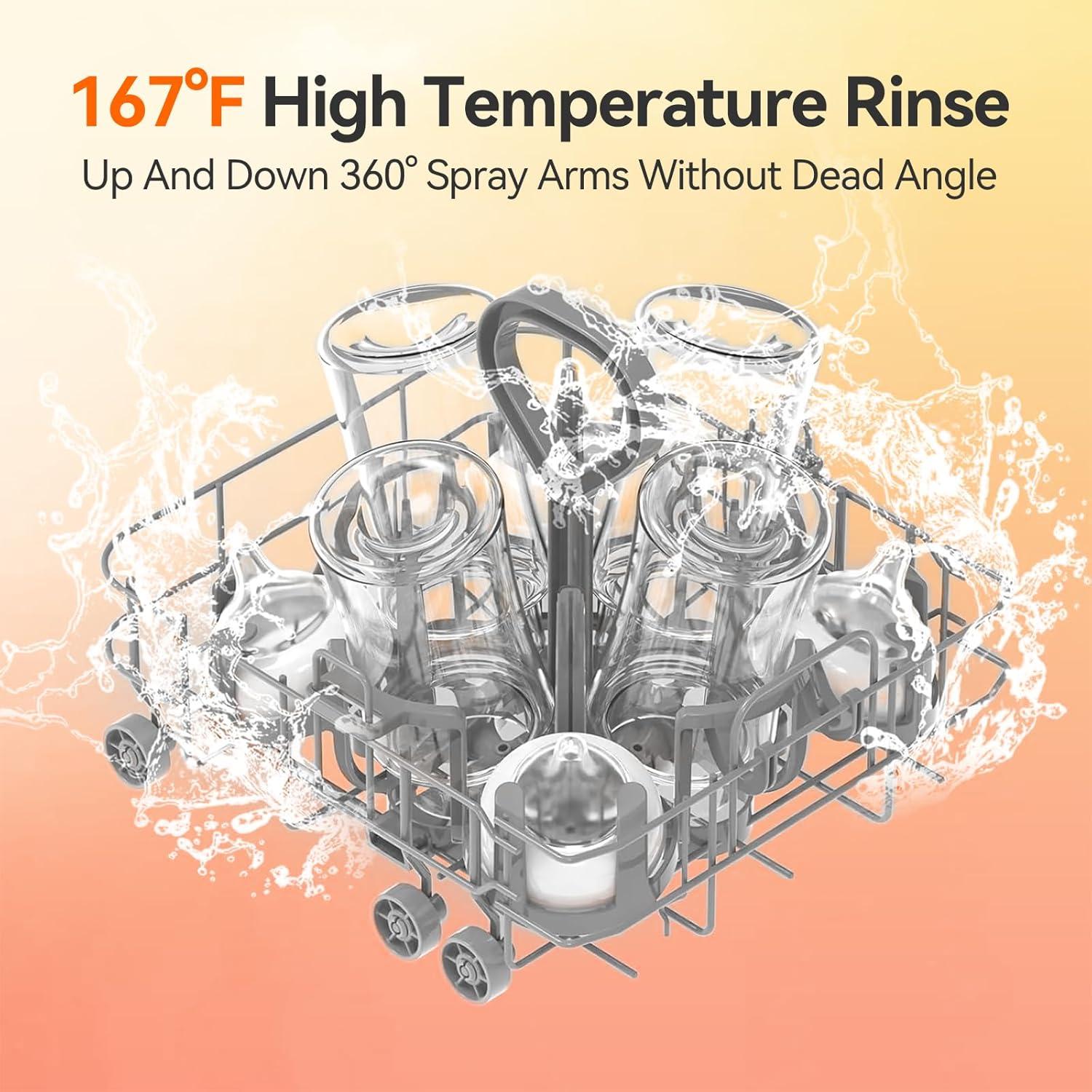 - Cleaning mode+Disinfection mode+Drying mode: Freely combine the four modes (Rapid Wash, Normal Wash, Strong Wash, Sterilize+Dry). Opt for the Quick Wash mode, which efficiently cleans your bottles in just 19 minutes.