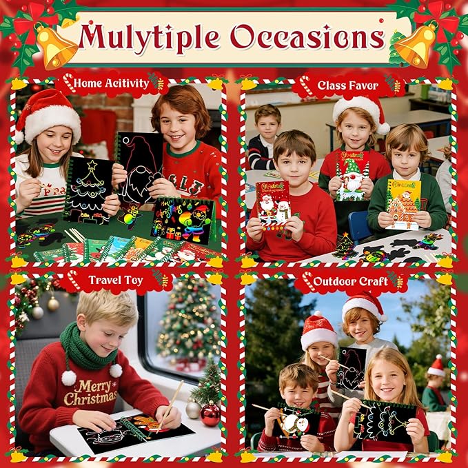 - 【Ideal for Family Travel & Class Prizes】Our Christmas scratch art set is a great way for parents and kids to bond while creating together. With its compact, pocket-sized spiral notebook design, it's perfect for road trips, flights, or quiet moments during family outings. It's also ideal for classroom use, providing a fun, creative, and mess-free activity for students. Keep kids entertained with mess-free scratch art—say goodbye to boredom and enjoy fun anywhere!
