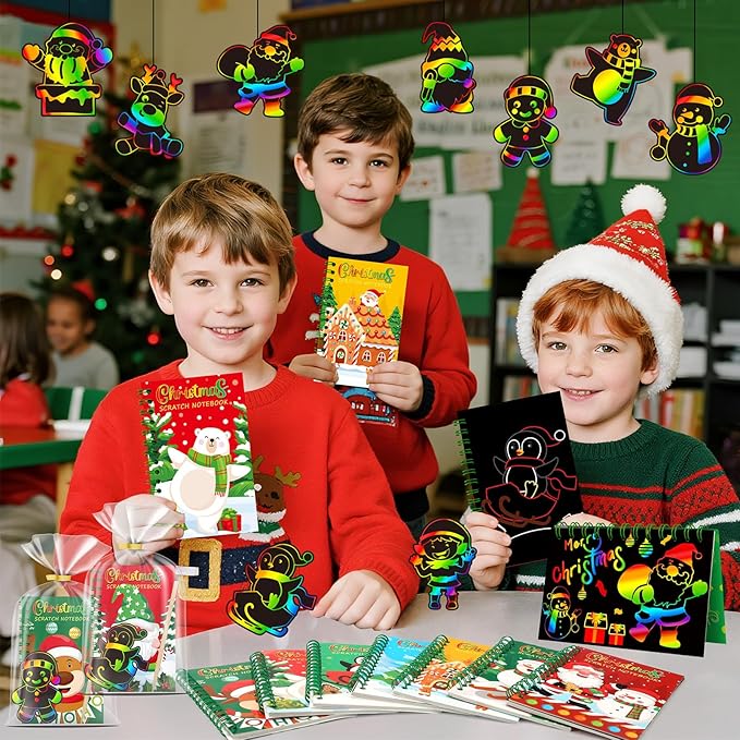 - 【Inspires Creativity & Builds Skills】Ignite your child's creativity with these fun Christmas scratch art notebooks! Perfect for doodling and drawing, this mini art kit helps develop fine motor skills, hand-eye coordination, and artistic confidence. No screens, just pure creative fun—watch your little artist's ideas come to life, one scratch at a time! Plus, with a variety of themes, kids can explore their favorite animals or festivals.