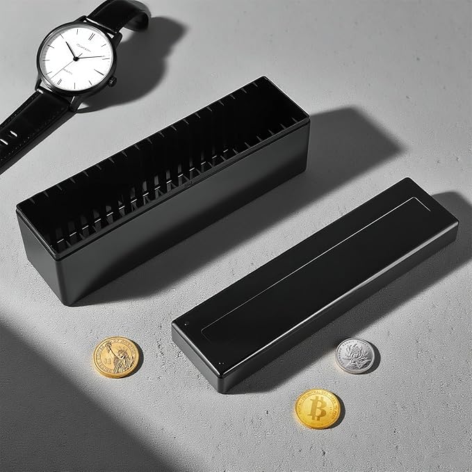 - COMPARTMENTS: The coin storage box with divider features separate compartments to reduce friction and collisions between coins, maintaining their condition