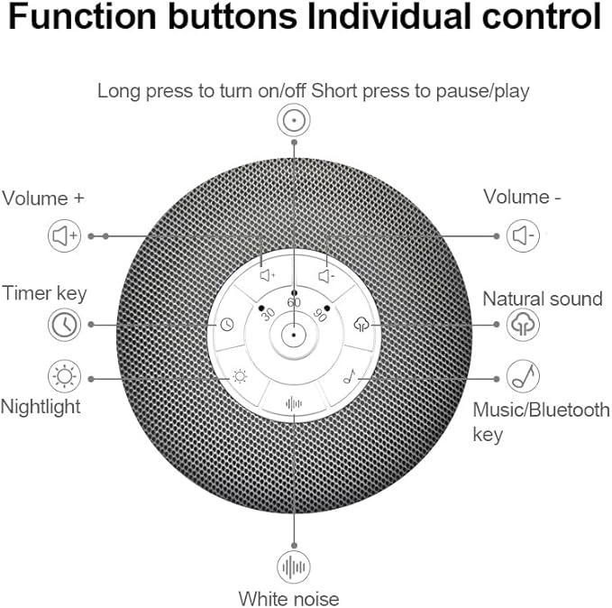 - ⏲️ Independent Timers for Sound & Light: Customize your experience with separate timers (30/60/90 min) for the sound machine and the night light. Enjoy automated shut-off for peace of mind and energy savings, tailored to any activity from napping to working