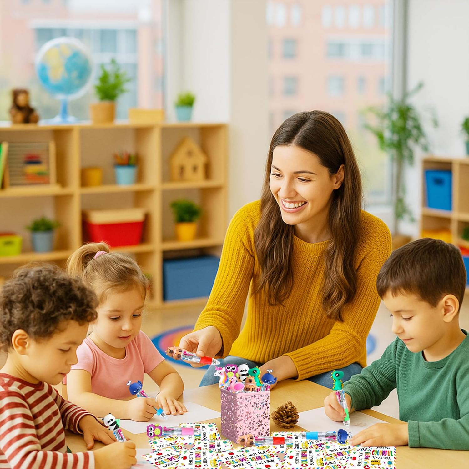 - GIFT-READY PRESENTATION: Individual cards feature cheerful 'Here's to a Colorful School Year!' message with school-themed graphics and rainbow border design