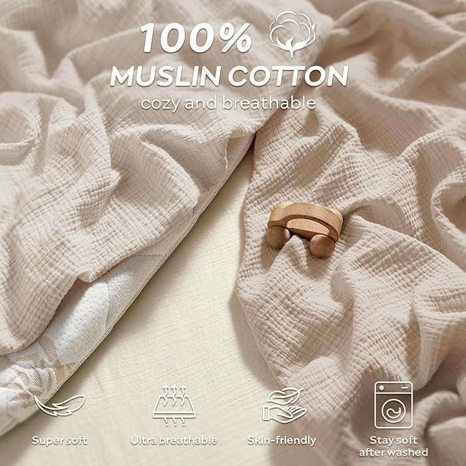 • Super Soft and Breathable Muslin Fabric - Muslin toddler pillowcases are made of 100% muslin cotton, ensuring a breathable, skin-friendly, and ultra-soft surface for your little one. These Toddler Pillow Case Covers retain their softness and vibrant colors even after multiple washes, providing a gentle and cozy feel for your baby’s delicate skin