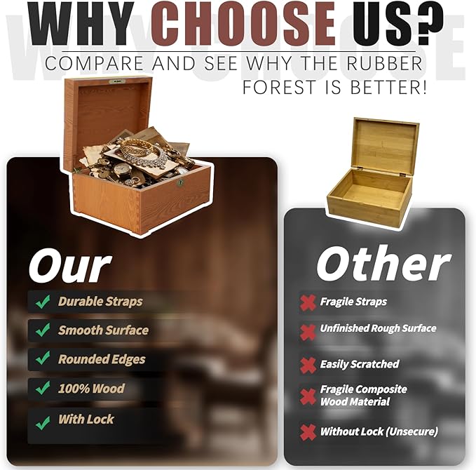 - 【Durable Wooden Box with Traditional Joinery】Crafted with precision mortise and tenon joints, this wooden box delivers unparalleled sturdiness. The wood storage box's reinforced structure ensures decades of reliable use, making it ideal as both a decorative box and discreet stash box.