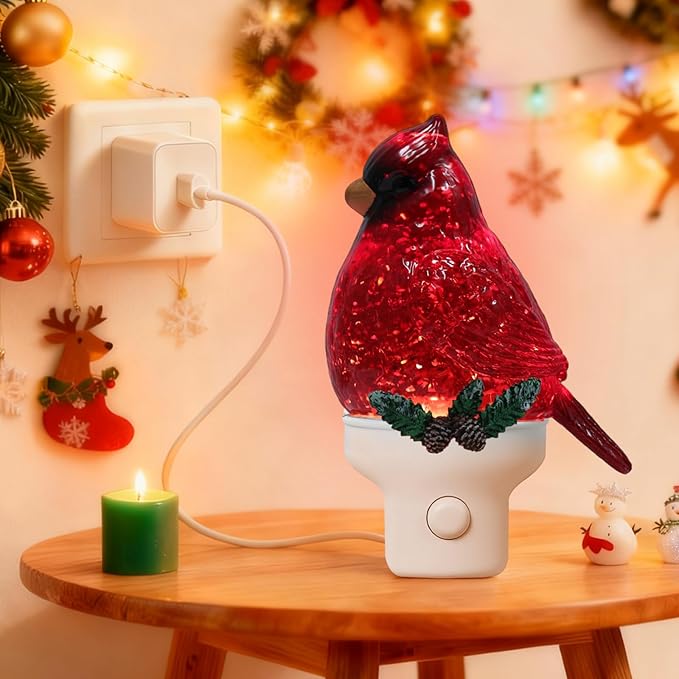 - Premium Material Christmas Night Light: Bring holiday magic to life with our stunning Christmas cardinal night light! Crafted with durable, high-quality materials, this decorative piece features a charming cardinal design filled with water and glitter flakes. When lit, the glitter swirls and dances gracefully, creating a mesmerizing winter wonderland effect. Perfect for creating a festive atmosphere in any room, this night light combines visual charm with practical durability.