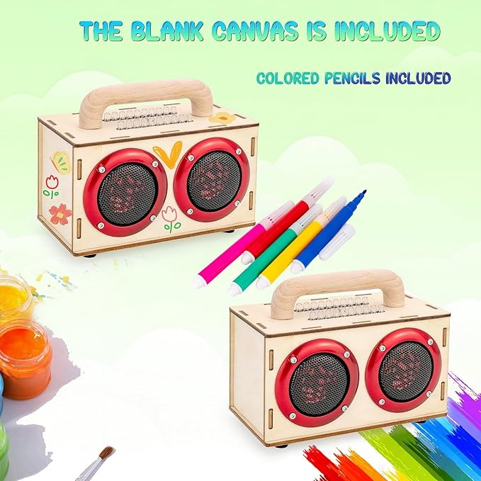 - Creative DIY & Gift: Kids can DIY paint patterns on the speaker shell, sparking creativity and artistic talent. This versatile bluetooth speaker kit is an unique gift choice for birthdays, graduations, DIY lovers, or any other holiday;Suitable for boys aged 8+, teens, and adults