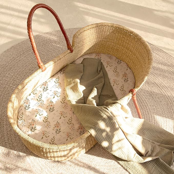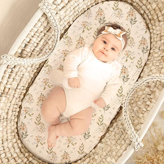 lulumoon Baby Bassinet Sheets Muslin: Soft Fitted Bassinet Sheets Floral for Girls - Fit for Oval Rectangle or Hourglass Mattress