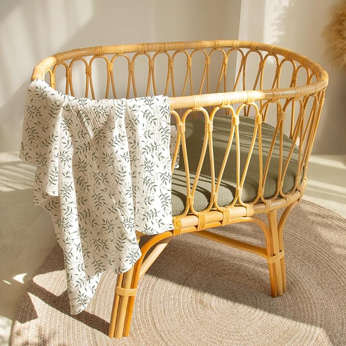 lulumoon Baby Muslin Bassinet Sheets: Skin-Friendly Leaf Bassinet Sheets for Boys - Fitted for Oval Rectangle or Hourglass Mattress