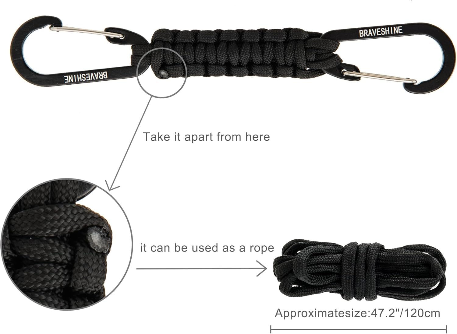 BRAVESHINE Paracord Keychain Carabiner Clip, D Ring Lanyard Hanger Stroller Hook for Water Bottle, Key, Backpacks, Men, Women