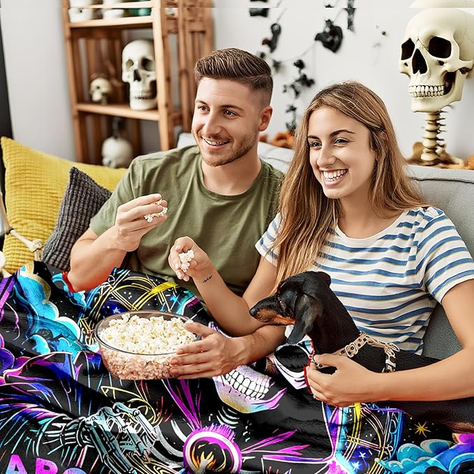 - Size and Material: This halloween skull blanket is 50x60 inches, perfect for home care, covering sofas, resting on chair backrests, and keeping warm on beds in bedrooms. It is made of high-quality 350GSM microfiber polyester and can be machine washed before low-temperature drying