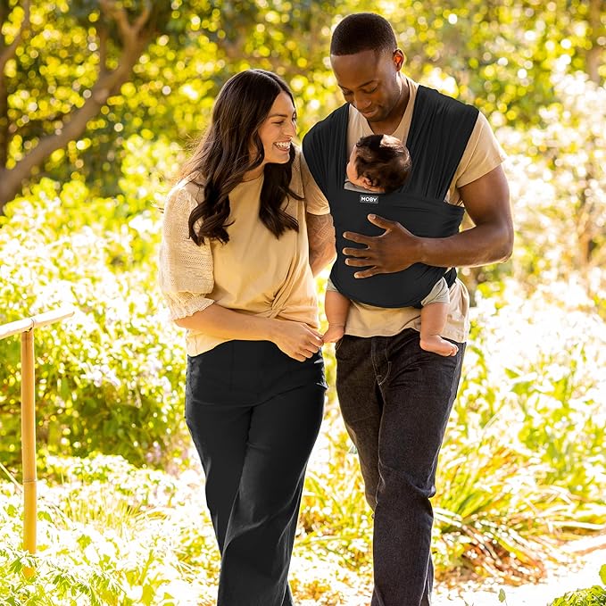 Moby Basics Baby Wrap Carrier for Newborns to Toddlers (8-33lbs), Infant Sling Carrier, Lightweight & Hands Free Design, Adjustable for All Body Types (Black)