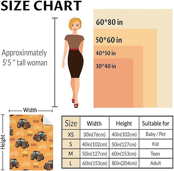 Boys Tractor Blanket for Kids Adults, 40x50 Inches Lightweight Soft Cool All Season Throw Blankets for Sofa Couch Chair Bed Office