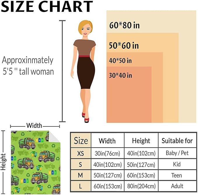 Blanket for Kids Adults Boys Garbage Truck Blanket Gift for Son Birthday - 40x50 Inches Cozy Soft All Season Throw Blankets for Sofa Couch Bed Office