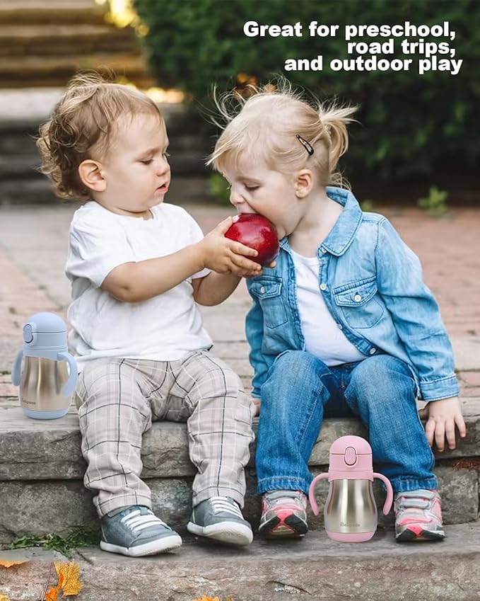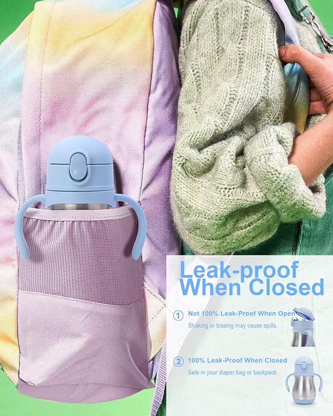 - Travel, Daycare & Home Ready – 100% leakproof when closed, this stainless steel toddler bottle fits lunchboxes, diaper bags, and car cup holders. Perfect for preschool snacks, family outings, or cozy winter daycare drinks