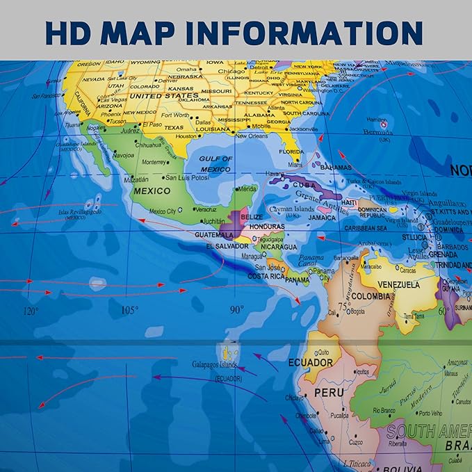 - Large Size & HD Map Information - This educational globe stands 17 inches tall and 13 inches in diameter, with its large size making map information easy to see at a glance. High-Definition printing makes the globe with clear geographic details of Earth.