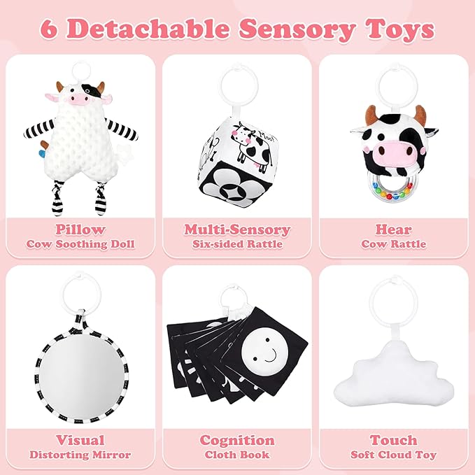 - 6 Sensory Toys: The 6 hanging toys promote the development of auditory, visual, tactile and self-awareness during play. This will effectively enhance the baby's overall hand-eye coordination and sensory cognitive abilities.
