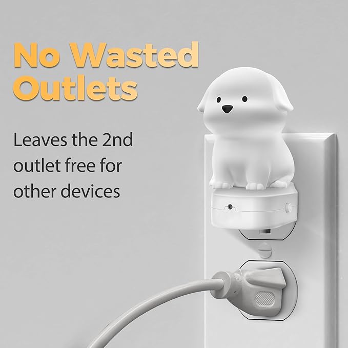 - CUTE KIDS NIGHT LIGHT WITH 3 LIGHTING MODES: 3D Dog night light plug in design, and this color-changing Kids Night lights comes with 3 different levels of lighting control settings: Solid color/3000K warm light/multicolor (cycle for 8 color). LED night lights plug into wall give the room appropriate illumination based on your choice.