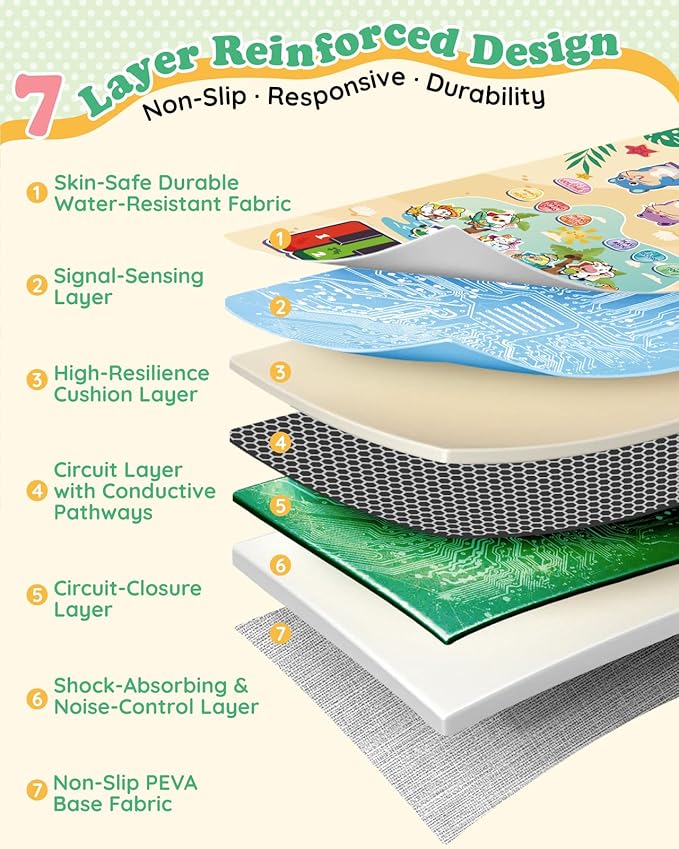 - Safe & Portable: Crafted with child-safe, non-toxic materials and a securely screwed battery compartment, this mat guarantees worry-free play. Its foldable, lightweight design makes it easy to carry to the garden, school, or picnics. The premium non-slip bottom keeps it secure during lively indoor or outdoor adventures