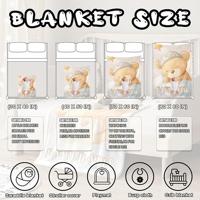 - Baby Gift Opportunities for Every Occasion -- Searching for a thoughtful and memorable present? This custom blanket with name is the ideal choice. Whether it’s a baby shower gift, Easter, Christmas, Mother’s Day, birthday, or a first-month celebration, its personalization and premium feel convey deep care and attention.