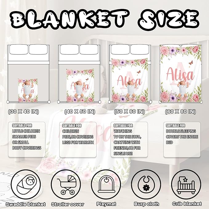 - Custom Baby Gifts Your Family Will Cherish -- Imagine the delight when parents unwrap this personalized baby blanket with name printed just for their little one. Ideal for newborns, toddlers, or kids, this blanket becomes a sentimental heirloom they’ll treasure. Click “Customize Now” and easily enter the name to create a unique custom baby blanket - the ultimate baby shower gift or birthday gift for baby girls or boys.