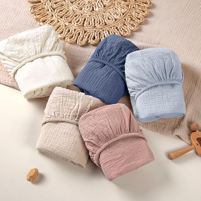 - Premium Soft Material: The bassinet sheets woven from 100% natural muslin cotton. Tender, breathable softer muslin fabric providing a gentle touch on the baby's delicate skin, and promoting a cozy and peaceful sleep environment.