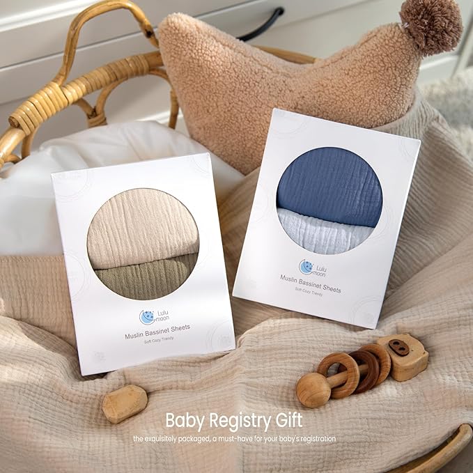 lulumoon Muslin Bassinet Sheets for Baby: Skin-Friendly & Soft Bedside Sleeper Bassinet Fitted Sheets for Boys