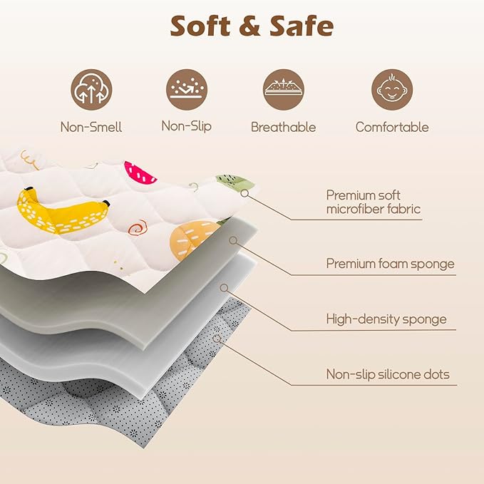 - [Non-Slip & Safety Certified] - Designed with high-density silicone grip dots, our mat stays firmly in place to prevent slips and keep playtime secure. Plus, it meets all safety standards and is rigorously tested for phthalates, lead, and toxicity—so you can relax while your baby explores.