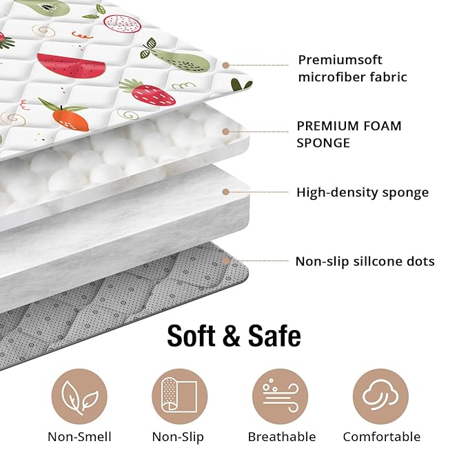 - [Extra Thick & Ultra-Comfortable] - Made with premium foam sponge and luxuriously soft microfiber fabric, our play mat is 30% thicker than standard mats—giving your baby superior cushioning for safer crawling, rolling, and first steps. Soft, supportive, and perfect for tiny adventurers!