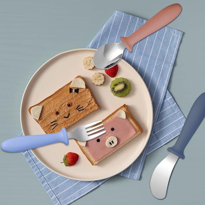 - 【Safe and Durable】 Our toddler flatware set is made of stainless steel, which is free of BPA, easy to clean, and safe for self-feeding