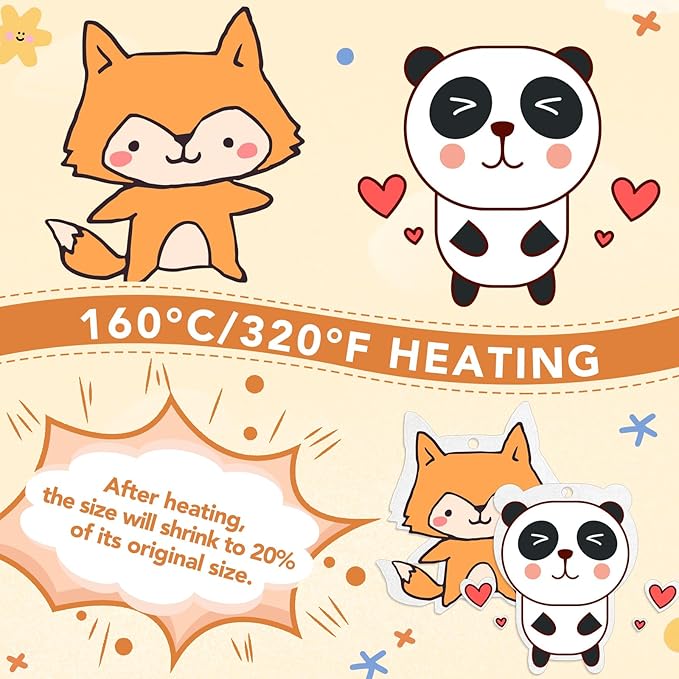 - 【Shrinky Plastic Sheets】The size of the shrinky plastic paper is 20x14.5cm/7.9x5.7in, which is suitable for various hand-made creative crafts. The size of the shrink plastic sheets will shrink to 20% of the original size after heating. You can decide the size of your craft according to the actual situation.(Note: Shrinky plastic sheets cannot be printed)