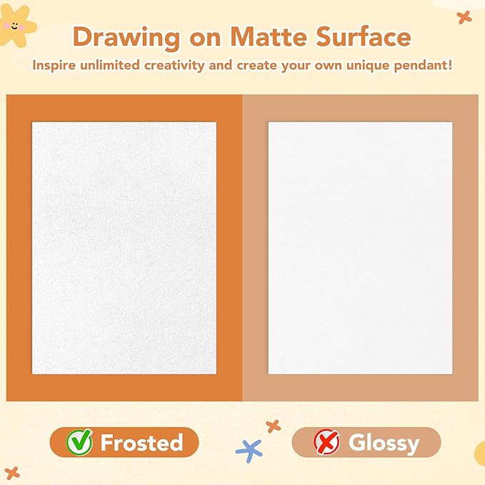- 【Essential for Handmade Crafts】Shrinky plastic sheets is not paper, but a special plastic sheet. Handmade crafts can be created by hand painting, heating and other operations. During the production process, you can stimulate your imagination and make your own unique crafts. You can also bring this surprise to your friends, family and children.