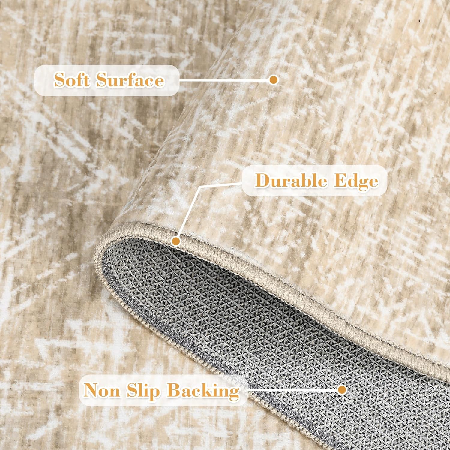 COZYLOOM 4x6 Rug Machine Washable Foldable Printed Area Rug Modern Distressed with Non Slip Design Stain Resistant Non Shedding Pet Friendly Carpet Perfect for Home Decor, Faux Wool, Beige