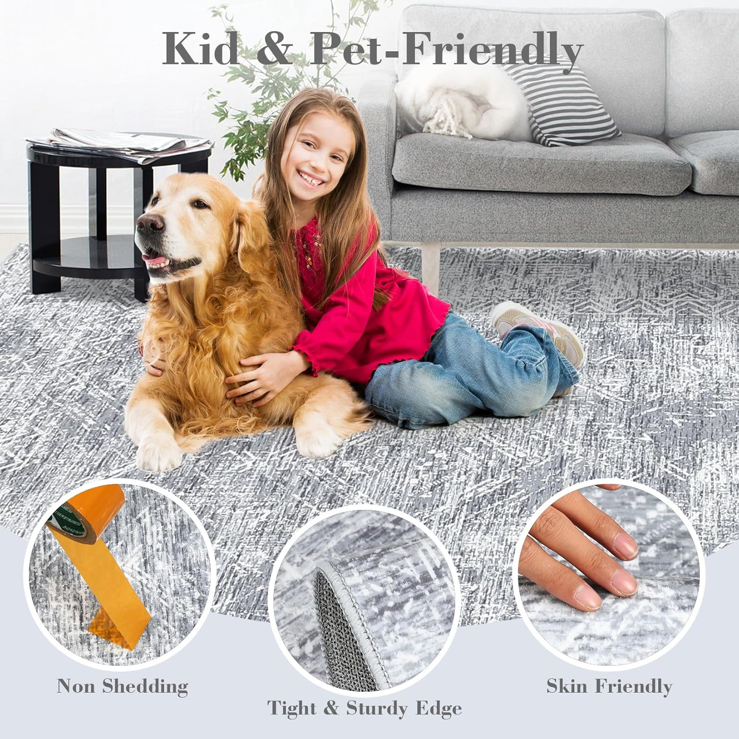 COZYLOOM 5x7 Rug Living Room Modern Washable Distressed Accent Carpet with Non-Slip Backing, Ultra-Soft Contemporary Geometric Floor Mat for Kitchen, Bedroom, Grey