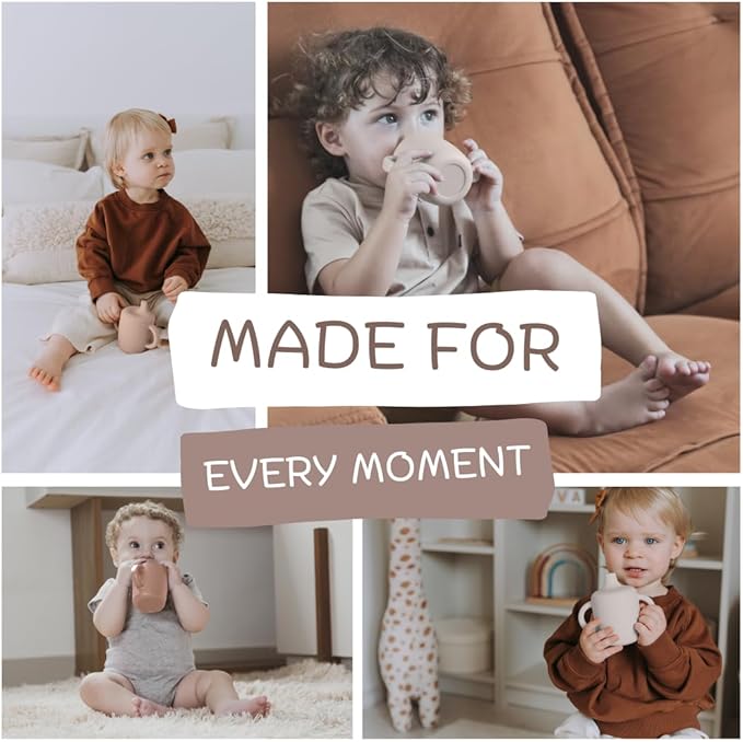 - UNBREAKABLE: The easy-grip, non-slip material makes the perfect cup for babies 6+ months and toddlers 1-3 years old. The silicone material will not break or crack when dropped by your little ones. The double handles also make it easier for babies and toddlers to hold and reduces the potential for spills. The transition cup can also be used without the lid as an open kids cup or as a toddler snack container.