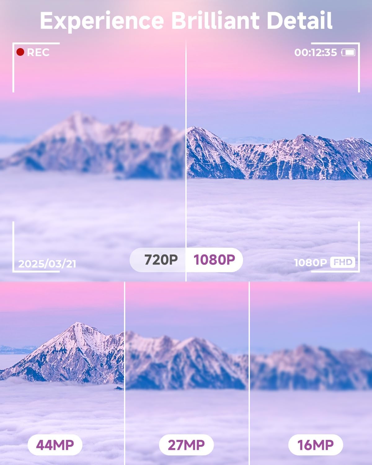 - 【44MP Photo & 1080P FHD Video】:This compact digital camera is equipped with Upgrade CMOS technology ensures precise detail. Mini camera support 44MP photos and 1080P UHD video recording and features a 2.4inch Ultra HD display. It comes with a 32GB memory card to record fun and memorable moments at any time.