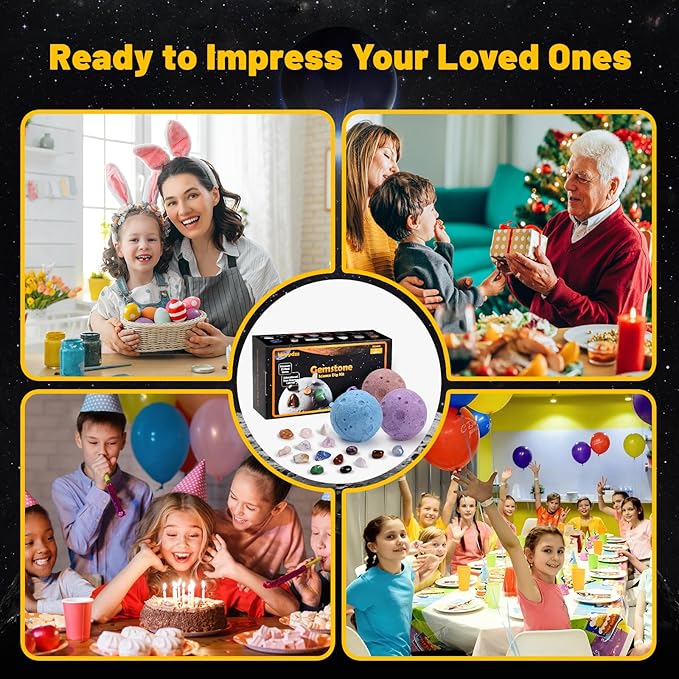 - Space Exploration Adventure: This mining excavation kit unlocks hours of imaginative fun, from digging and dusting to analyzing and identifying gemstones, every step keeps kids engaged. It’s the perfect way to inspire young space enthusiasts to learn and explore.