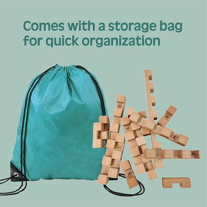 15 in 1 Educational Wooden Building Blocks - Mortise and Tenon Assembled into 15+ Various Shapes, STEM Toys Gift for Kids and Classroom, DIY Building Toys for Ages 5+ Teens Adults - 42 Pcs