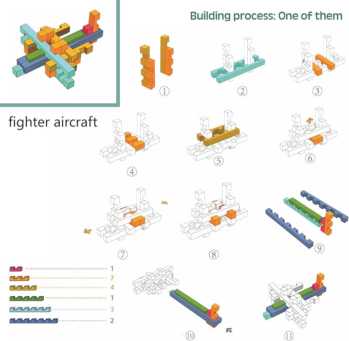 - 15+ Building Ideas from Mortise and Tenon: 42 wooden blocks can be combined into 15+ different forms according to the instructions, STEM Brain teaser puzzles toy for kids.