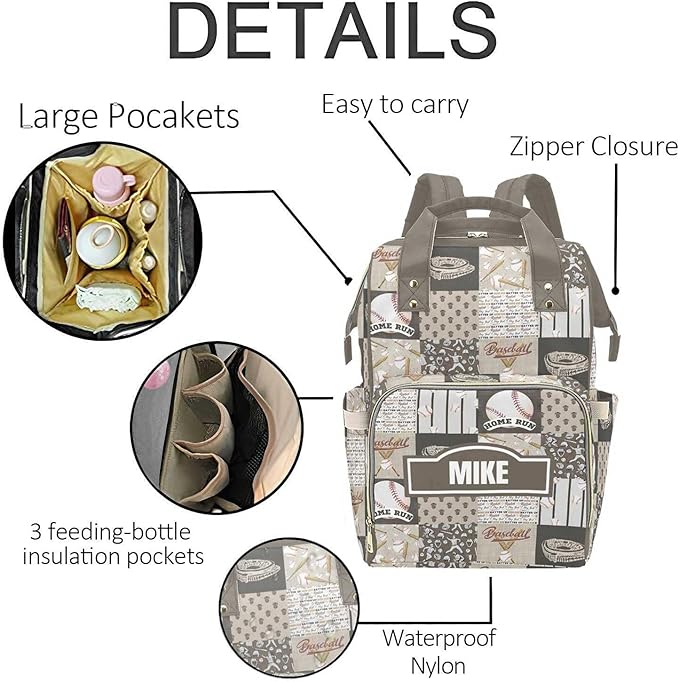 Personalized Baseball Diaper Bag with Name – Custom Baby Bag, Nursing Tote Backpack for Mom, Custom Name Mommy Daypack, Shower Gift for Baby