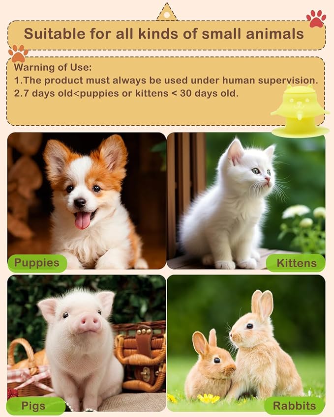 - Warning of Use - The product must always be used under human supervision. For puppies or kittens over 30 days old, avoid this feeder as their sharp teeth can damage soft nipples and pose a risk of ingestion. Patience is required for first use, as newborn pets need guidance for first-time use.if you have any questions, please feel free to contact us