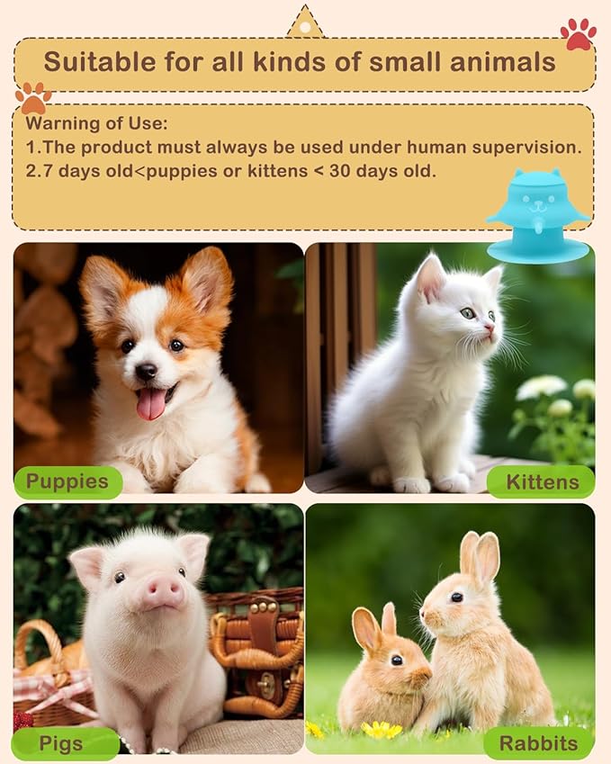 - Warning of Use - The product must always be used under human supervision. For puppies or kittens over 30 days old, avoid this feeder as their sharp teeth can damage soft nipples and pose a risk of ingestion. Patience is required for first use, as newborn pets need guidance for first-time use.if you have any questions, please feel free to contact us
