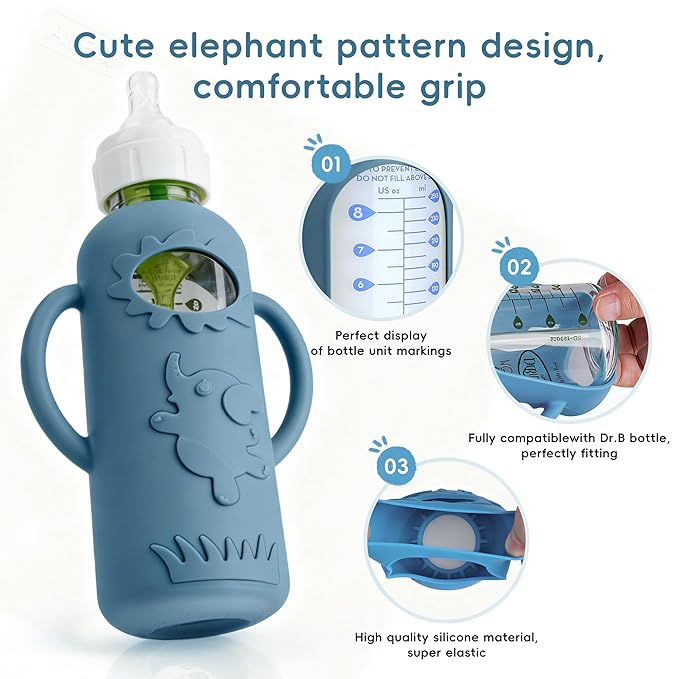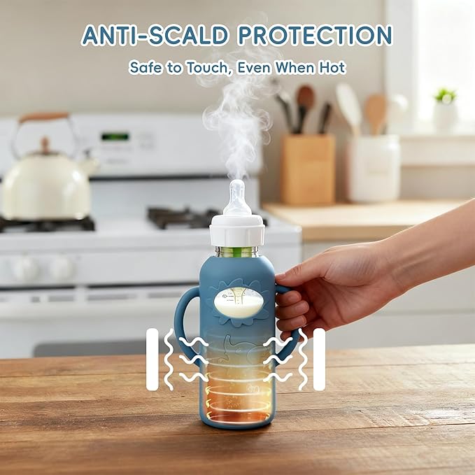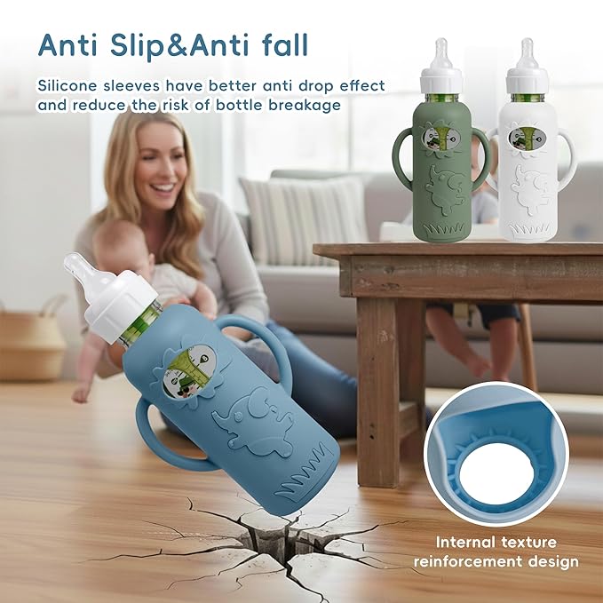 - ✅ Shockproof & Heat-Resistant: Durable silicone sleeve cushions the bottle against accidental drops and bumps. Also provides insulation to help prevent burns and protect baby’s delicate skin.