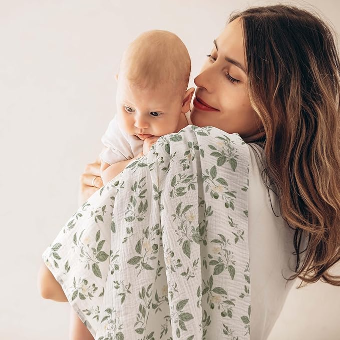 - SOFT & BREATHABLE: Our muslin swaddle blankets are made of 100% cotton (Muslin). The best pure natural material without harmful chemicals for babies, providing maximum breathability with skin-friendly soft touch, which is gentle on baby's skin. And means they can keep your little one warm and cozy in cooler weather, allowing their skin to breathe in warmer weather