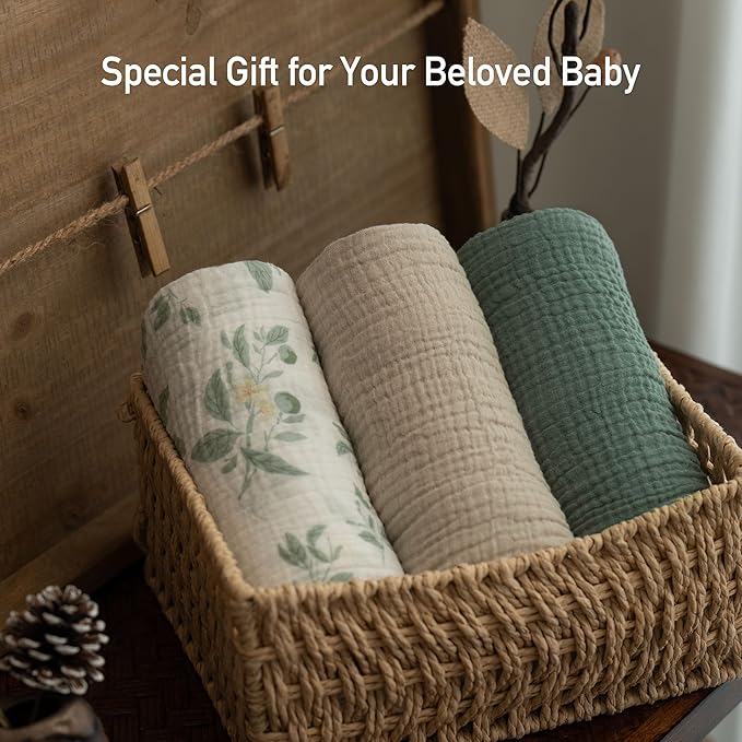 GLLQUEN BABY Muslin Swaddle Blankets,3-Pack Receiving Blanket for Newborn Boys and Girls,Baby Swaddle Blanket Unisex,Osmanthus Fragrance,Baby Essentials, Registry & Gift, 40 x 38 inches