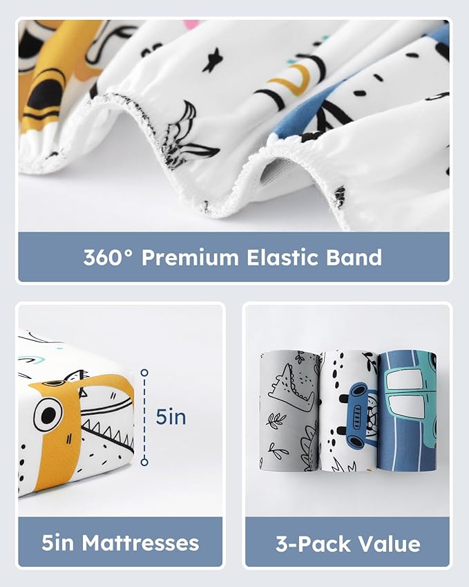- 3-Pack Essential Baby Item: Pack and play sheets fitted for boys and girls come with 3 packs. A wide range of unique prints available, you can choose pack and play fitted sheet to decorate your baby's room, creating a better and calm sleeping environment for your darling.