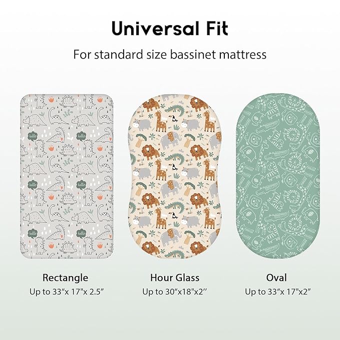 - Perfect Size: Measured 32"x16", universal bassinet sheets snugly fit for most popular mattresses, such as standard oval, round, rectangular, and hourglass. 5-Inch pocket provides full coverage and protection for your mattress.
